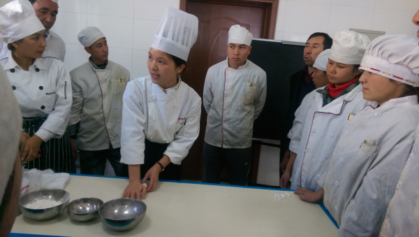 (我校烹饪组蒋露露老师为拜城县职业技术学校学生上面点课)