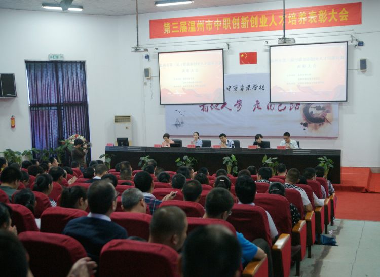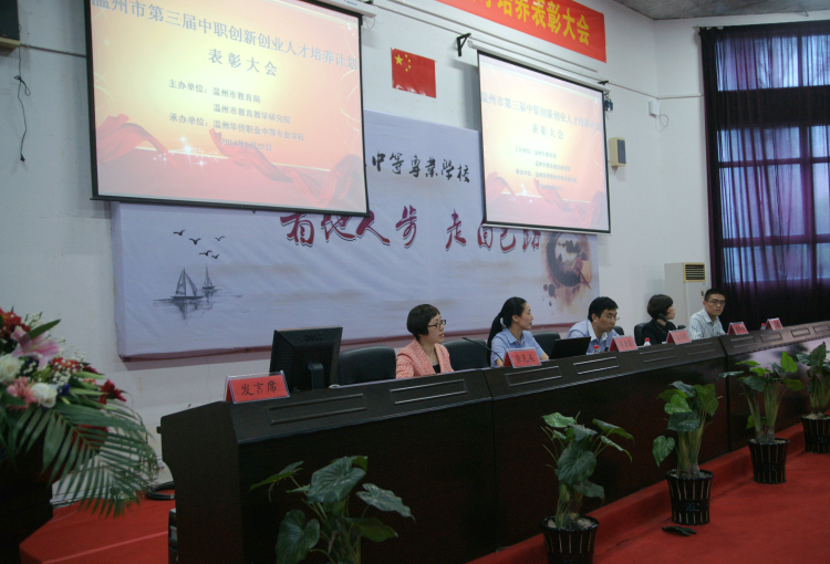 5月22日下午,第三届温州市中职创新创业人才培养计划表彰大会在我校多功能厅举行。来自各县(市、区)教育局、教研院相关领导,全市中职学校校长,教师及学生代表等300余人参加了此次表彰会。会议由温州市教研院职教教研室副主任徐克美主持。