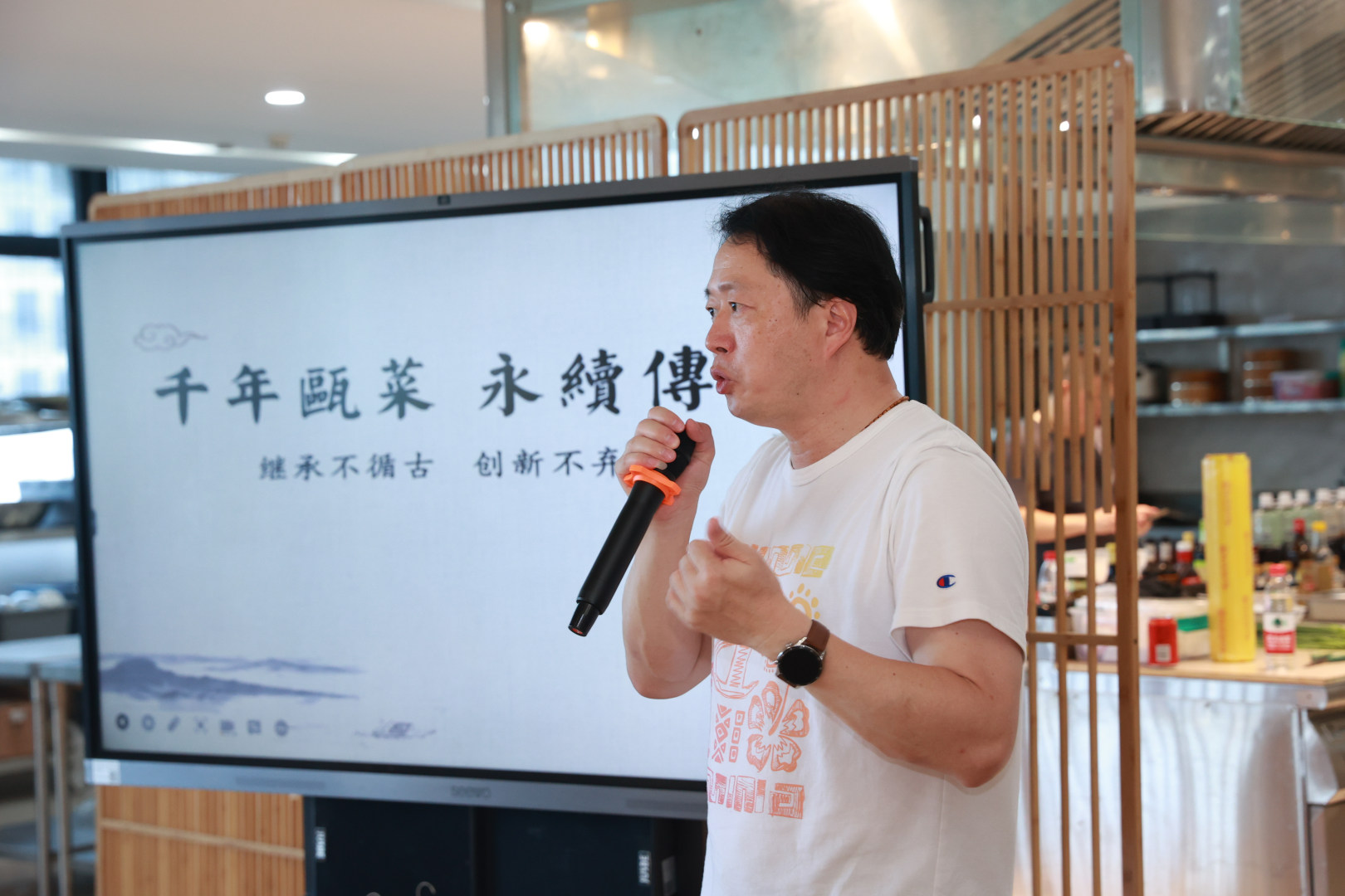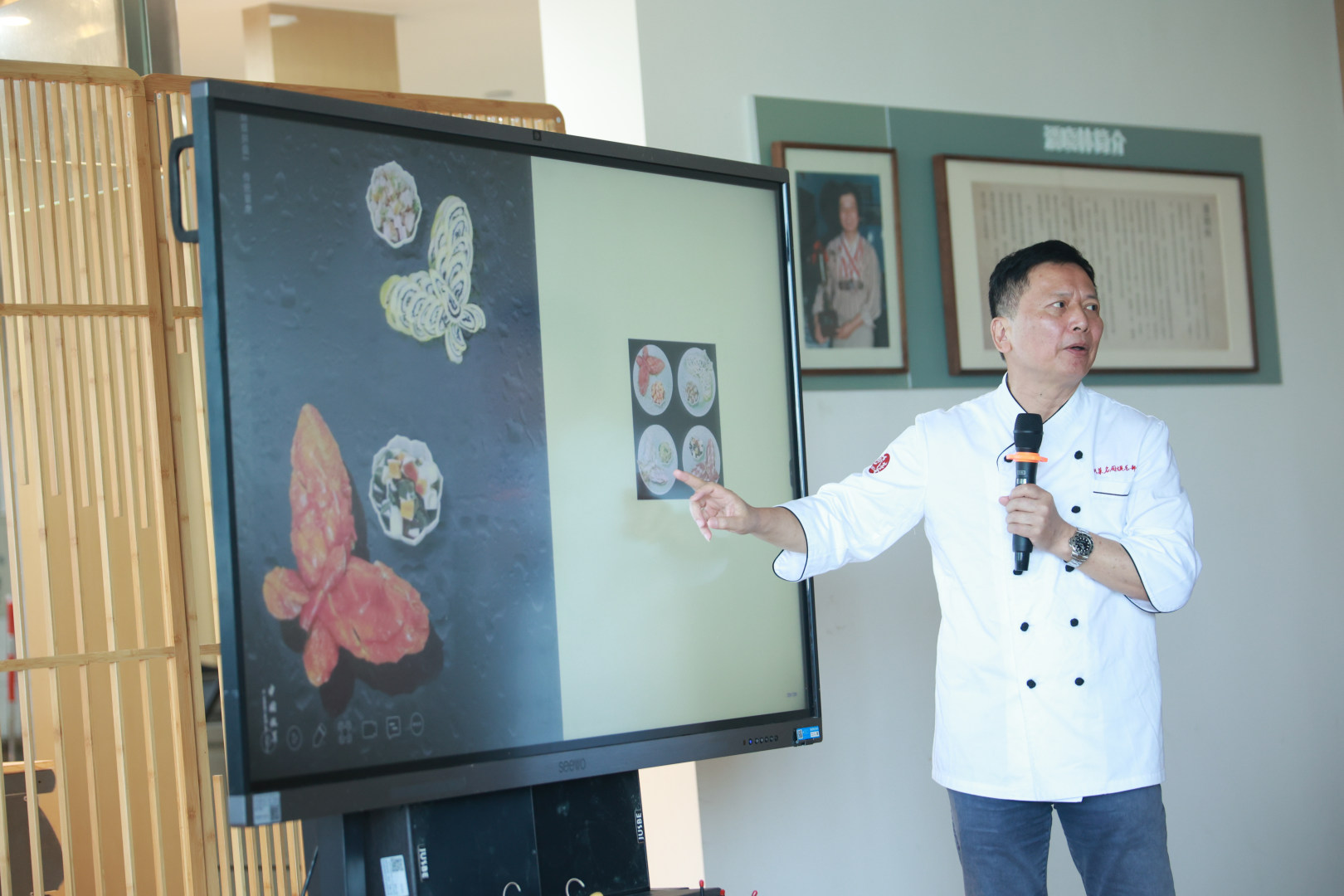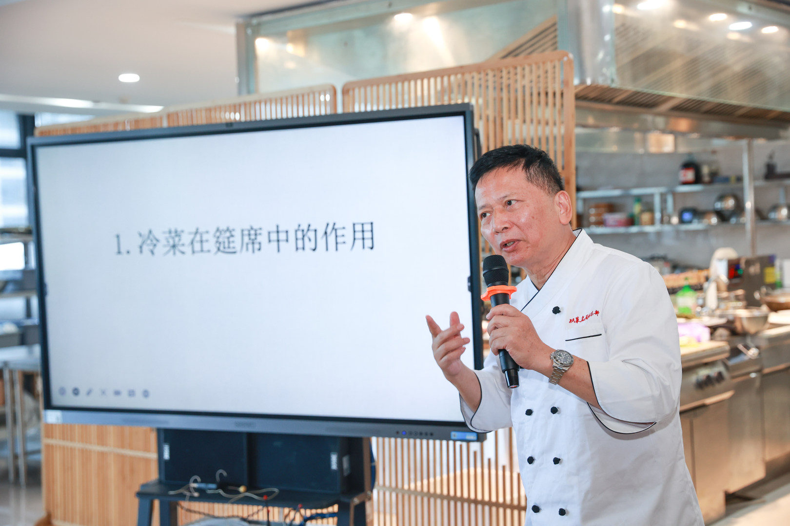 2022年7月10日在温州华侨职专实训楼9楼大师工作室举行,潘晓林大师亲自为厨师长们介绍了温州冷菜的沿革与创新,并亲自演示了宴席冷菜新时代发展的背景下融合创新的思路与制作。
