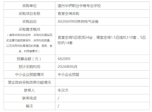 为便于供应商及时了解政府采购信息,根据《财政部关于开展政府采购意向公开工作的通知》(财库〔2020〕10号)等有关规定,现将温州华侨职业中等专业学校2024年5月采购意向公开如下: