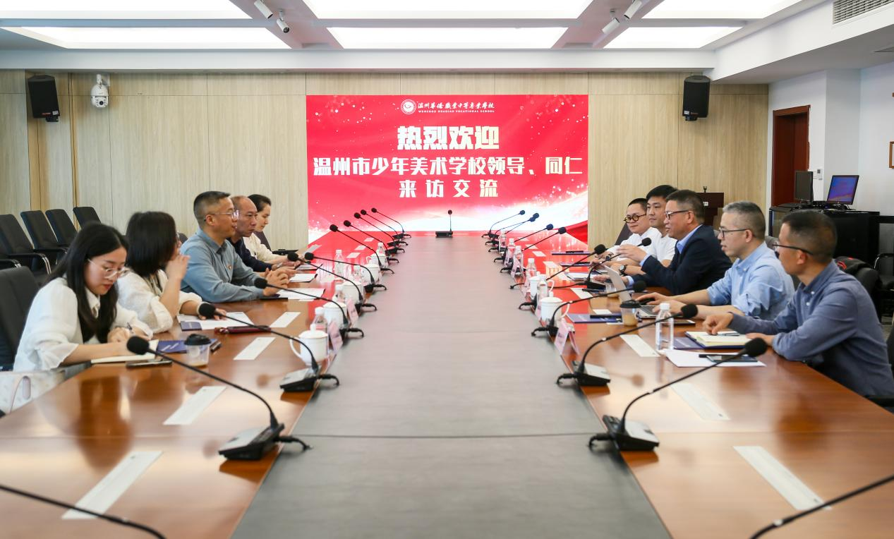 4月28日,温州市少年美术学校党支部书记吴瑞杰一行赴温州华侨职业中等专业学校开展党建共建交流活动。华侨职专党委书记徐健,党委副书记、校长黄晓杰,副校长林日正等陪同参观并座谈。双方就党建品牌创建、清廉学校建设和党建课题研究等方面进行了深入研讨与交流。